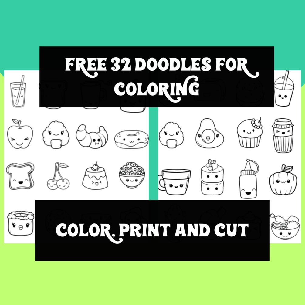 • Set of 32 doodle stickers for coloring in PDF file "color and print" - size 8 X 10 inches